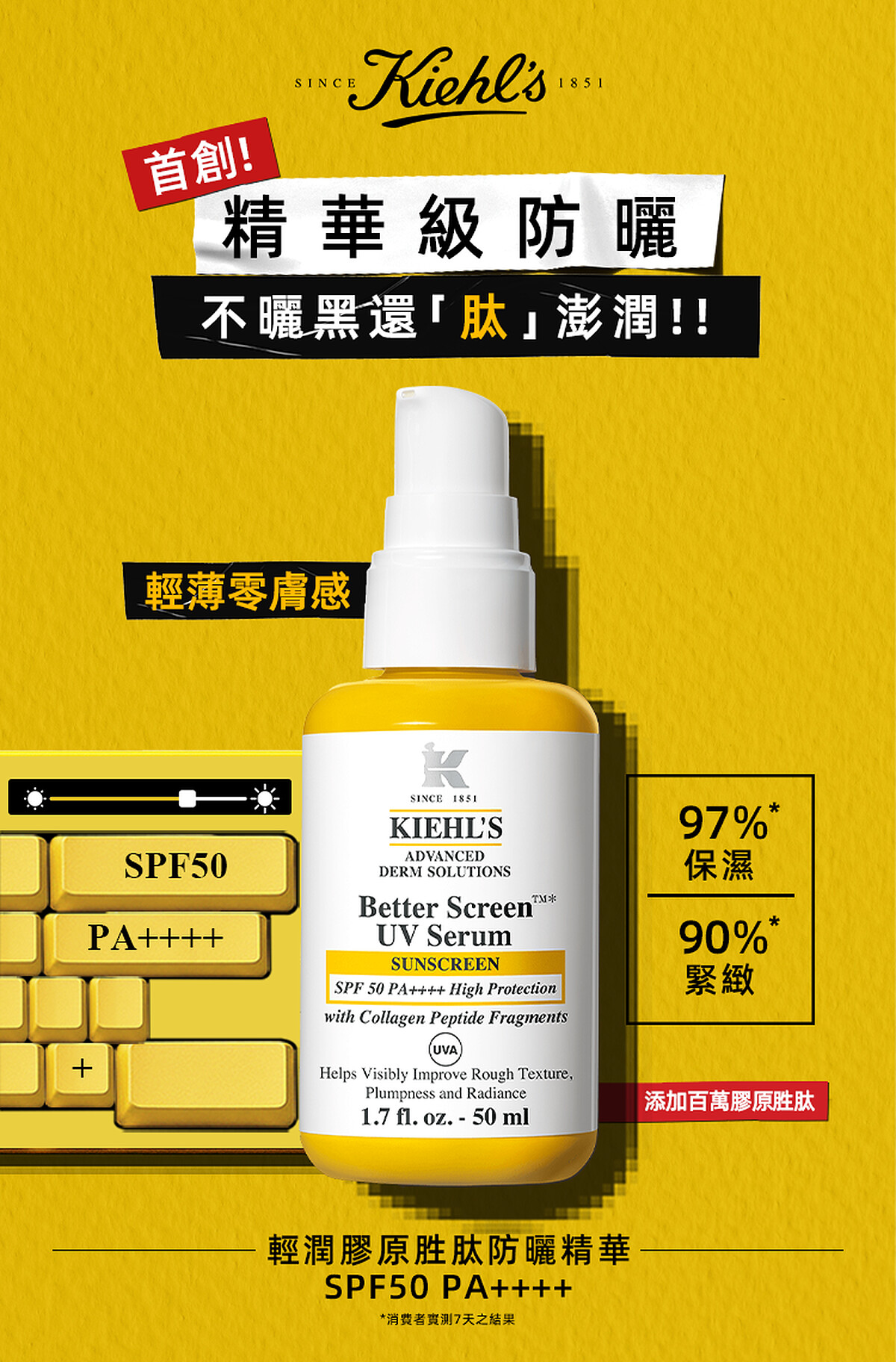 契尔氏今年新品研发又有惊人突破!擦防晒还能边补胶原蛋白真有可能?契尔氏真的办到了!特别添加胶原蛋白肽,利用小分子保湿高渗透力直达肌底,防晒还兼顾帮肌肤补充胶原,在脸上瞬间吸收,达到保护旧胶原、製造新胶原作用。搭配独家的微米防晒膜技术,像给肌肤穿了层隐形防护衣,360度SPF50 PA++++全波段无死角防护,日常通勤、户外休闲等场合面对大太阳都很安心。是防晒也是精华,持续使用皮肤还能同时变得更紧緻、更弹润!一罐防晒就有双重效果!防晒兼保养天天用让素颜肌肤都觉得状态好到发光!