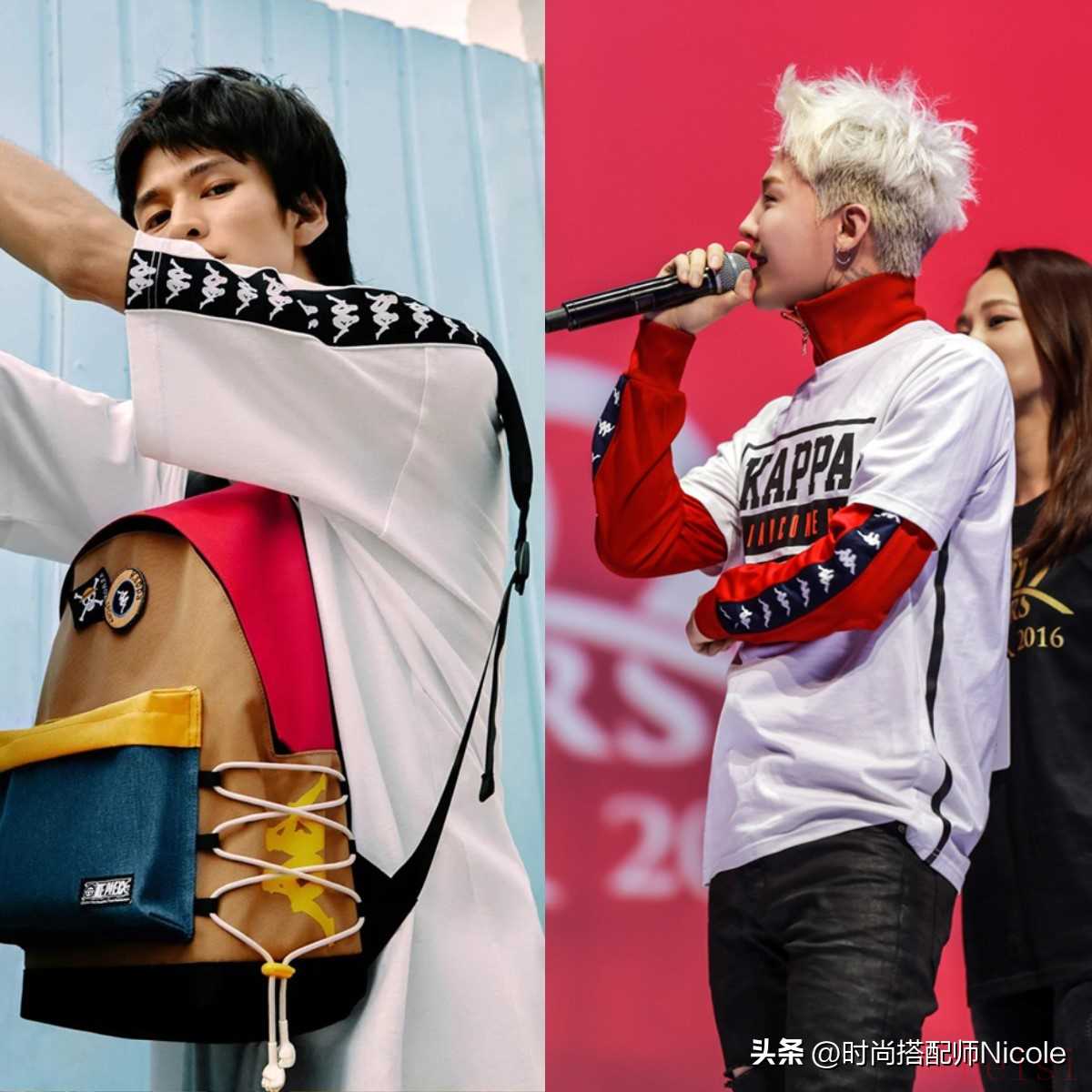 那会的Kappa和耐克、阿迪的运动风截然不同,更加的叛逆街头,作为串标鼻祖,哪怕现在看来这样的串标元素也是非常的复古时髦的。