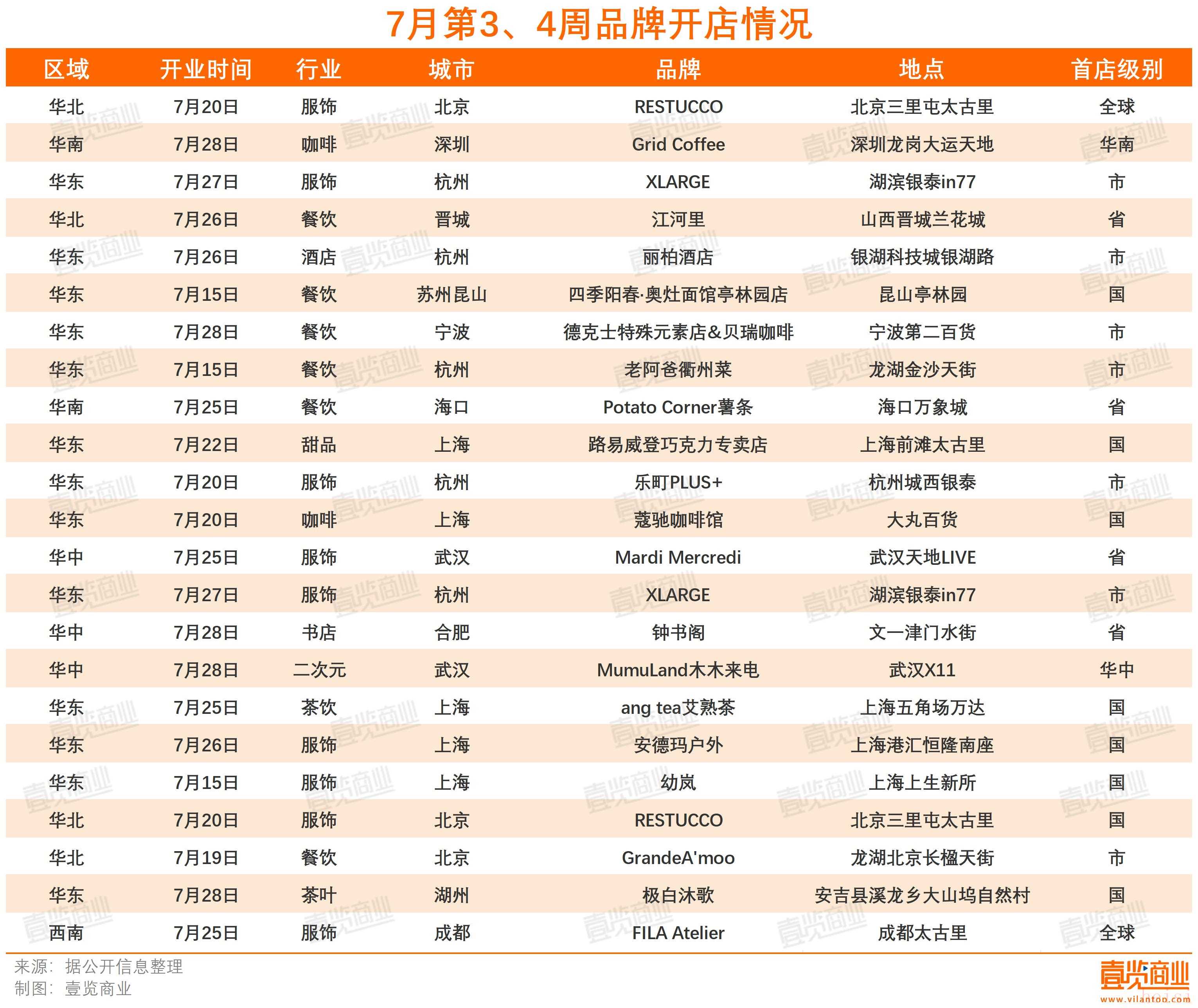 值得一提的是,北京三里屯太古里成为热门商业体,7月第3、4周有1个品牌开出全国首店、1个品牌开出全球首店。