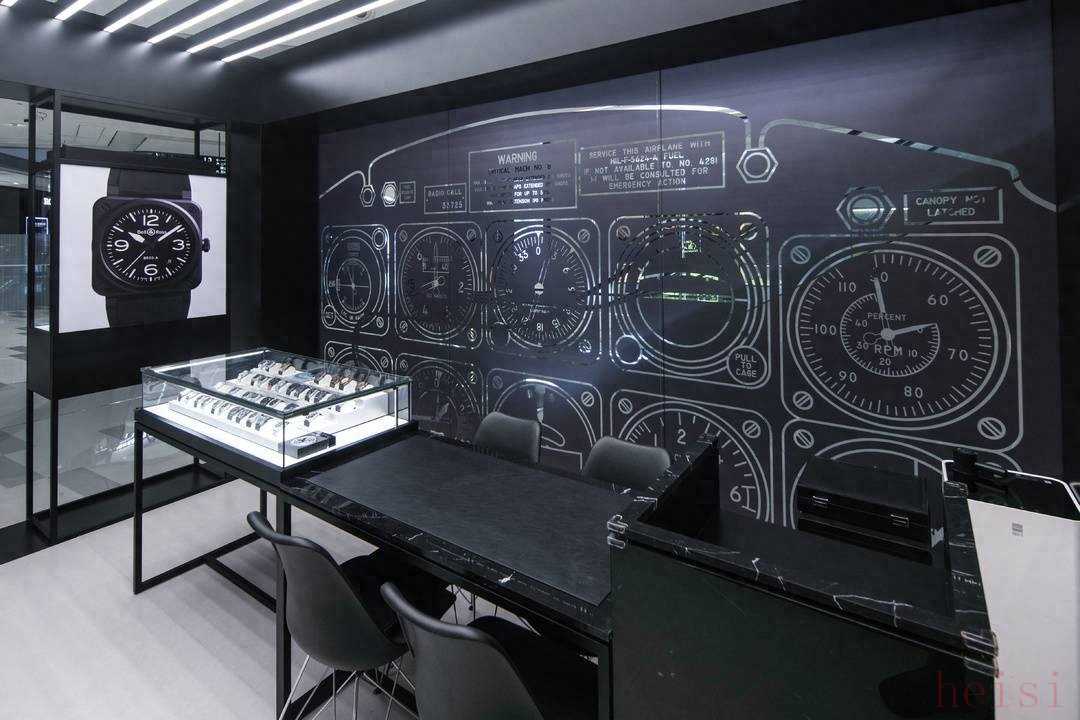 Bell & Ross 柏莱士成都IFS精品店以黑色为主色调,背景墙为飞机驾驶舱图案,与品牌腕表一直以飞机驾驶舱仪表盘撷取灵感的设计美学完美呼应,让顾客能够切身感受到来自品牌DNA——“从驾驶舱到手腕”的无穷魅力。店内陈列了如BR-X5系列、BR 05系列、BR 03等经典腕表,以及与全球同步的最新款系列作品。