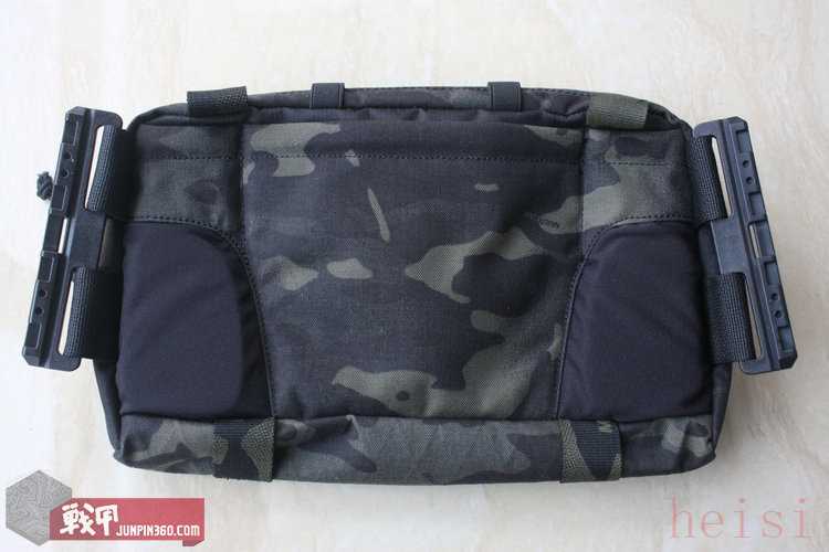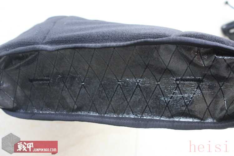 视线再来到包包的底面,左右各有一条两格的标准1英寸Molle织带,可用于扩展固定其它物品。不过我想Mr.Control作为胸包的定位而言,应该不会有人在这基础上再扩展使用吧?另外有眼尖的朋友应该已经发现底面上若隐若现的纹理了吧?猜猜会是怎么回事呢…