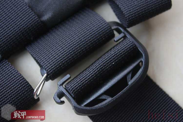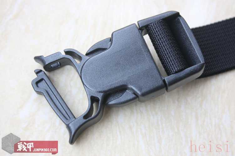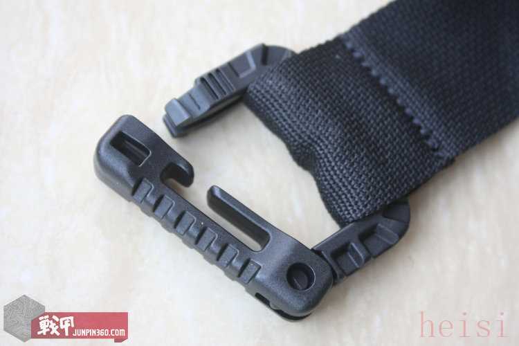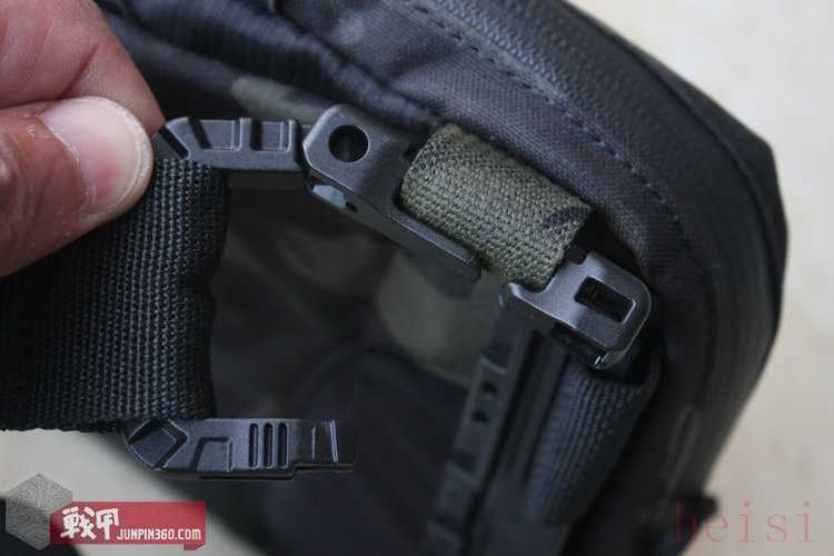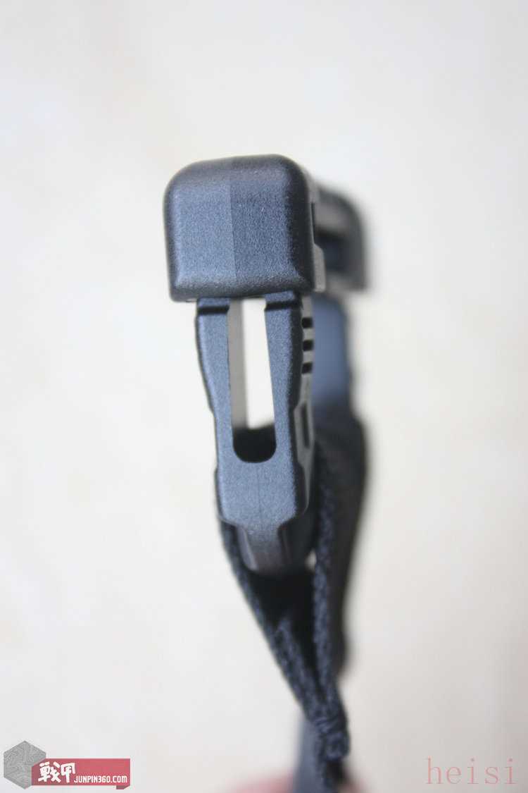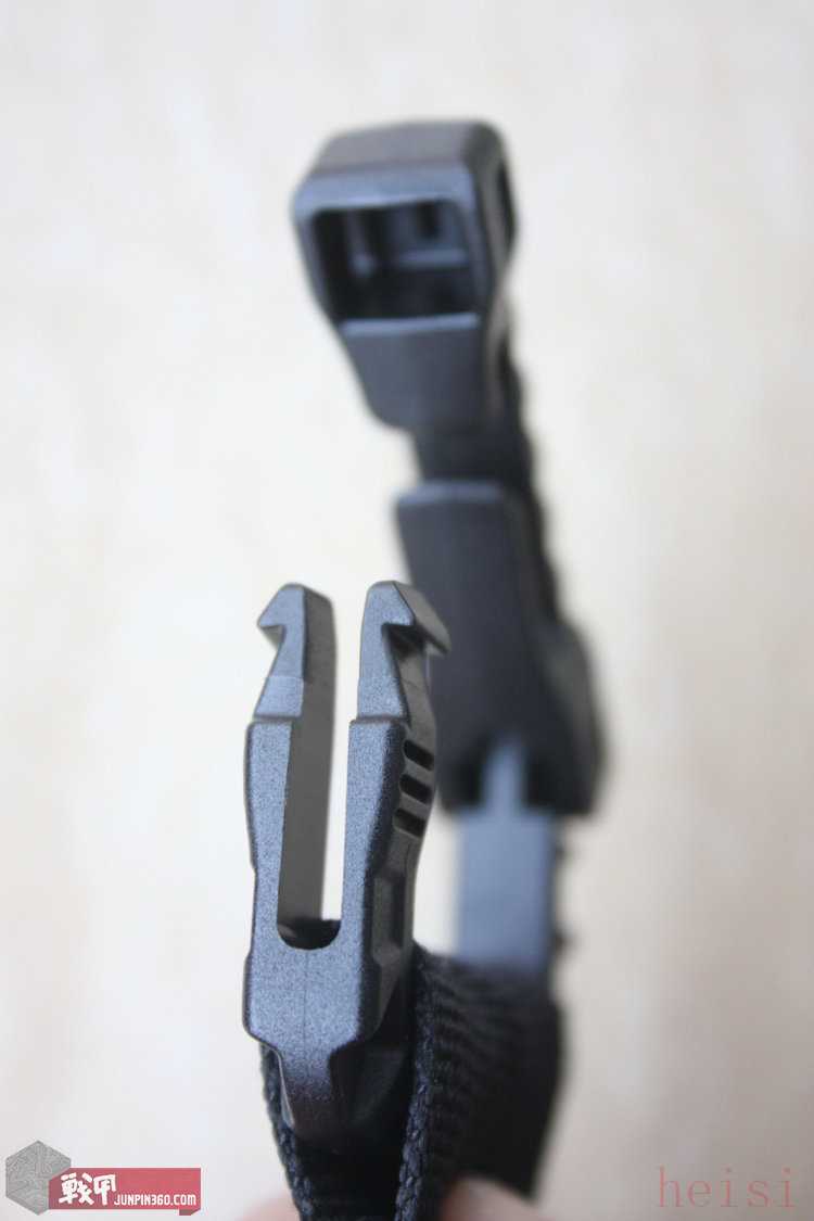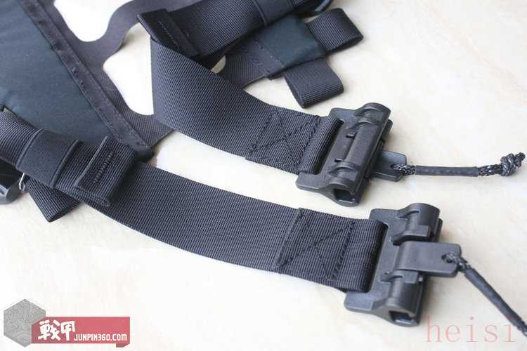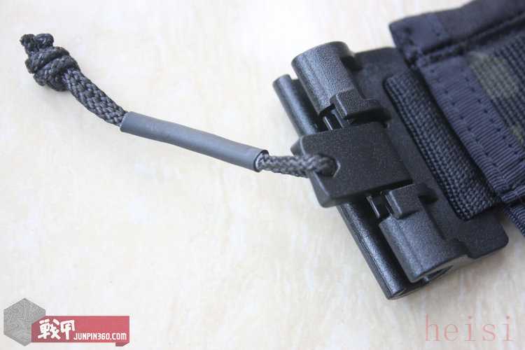肋带的另一端,也就是与胸包相连的那头,采用的则是尺寸稍小的国产Tybes快拆扣件组件,同样为了便于使用,有尼龙绳配以热缩管穿插其上。