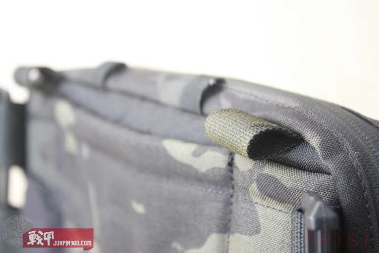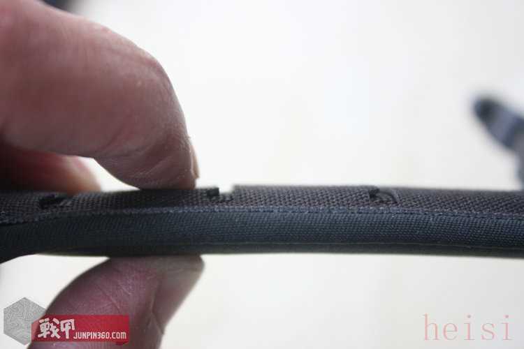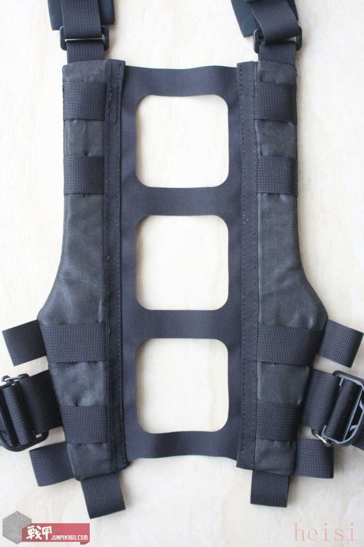 两侧有发泡棉填充的部分,面料表面亦是固定有横向的尼龙织带,可在使用者有需要的时候,固定Molle系列的附包或其它附件以满足使用需求。