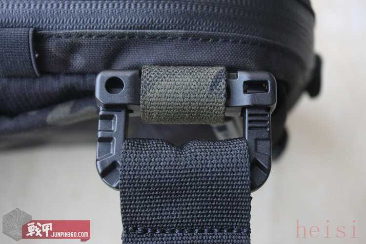 而另一端的连接,还记得包包上面靠近身体一侧的两个织带环么?用WJ扣件的横轴穿过即可完成连接。