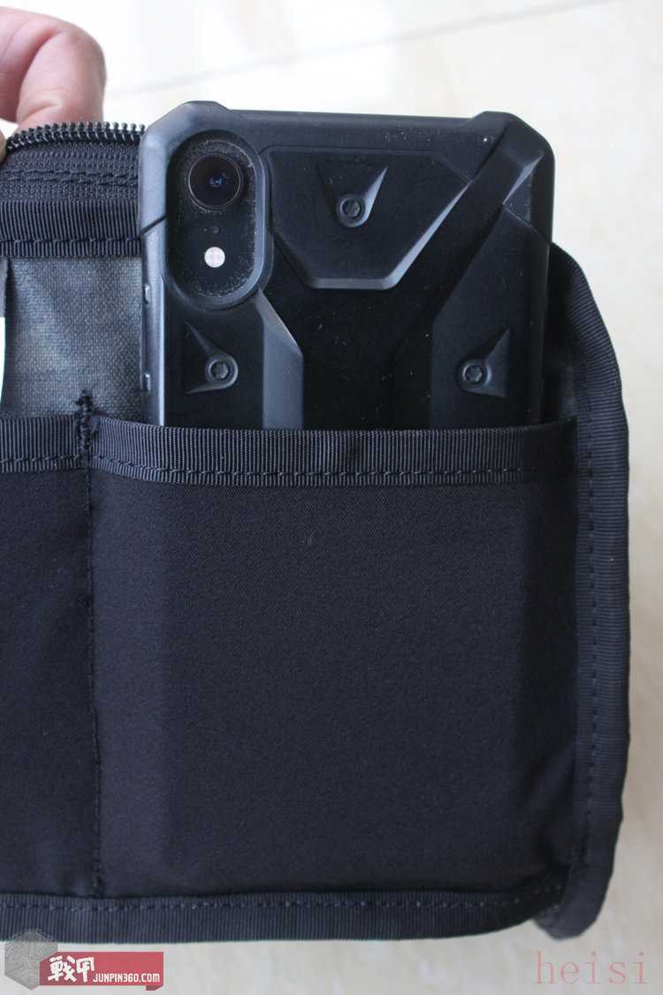 如果不使用用于分隔固定的弹性织带的话,这个口袋亦可作为独立的储物口袋来使用,放一个手机来讲,还是够用的,就是外露部分稍多一丢丢,可能不那么保靠。