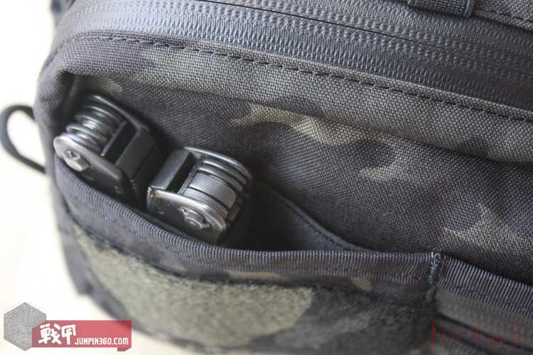 这样,MR.Control胸包的连接就算完成了。无论是在剧烈户外运动时使用,还是配合迷彩服做一些大运动量活动时使用,都能满足牢靠的佩戴稳定性。同时之前所说外侧前置储物分隔内的弹力织带分隔,分别可以用于固定9mm和5.56mm物体的装载物,这里就不过多赘述了,懂得都懂…