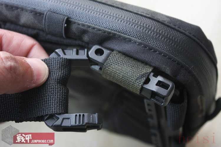 另一端连接胸包的扣件,同样也是来自国际品牌,Woojin的Plastic Carabiner扣件,由此可见Lii Gear在MR.Control这款胸包上真的是用料十足。