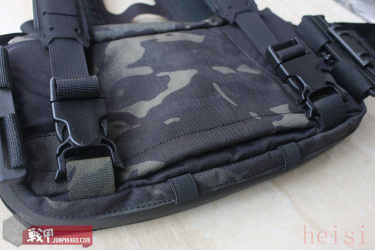 因为无论是侧面的First Spear快拆扣组件还是顶端的尼龙织带环,都是左右各有一组的,所以胸包的连接方式,也完全可以左右互调,完全照顾不同佩戴习惯的人群随意组合使用佩戴。