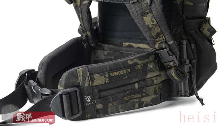 腋下两肋的位置,肋带与背板的连接,同样采用与上方相同的活性连接,保证灵活性及贴附性。不同在于为了提高使用时的灵活性,这里配置的是可拆卸扣件。