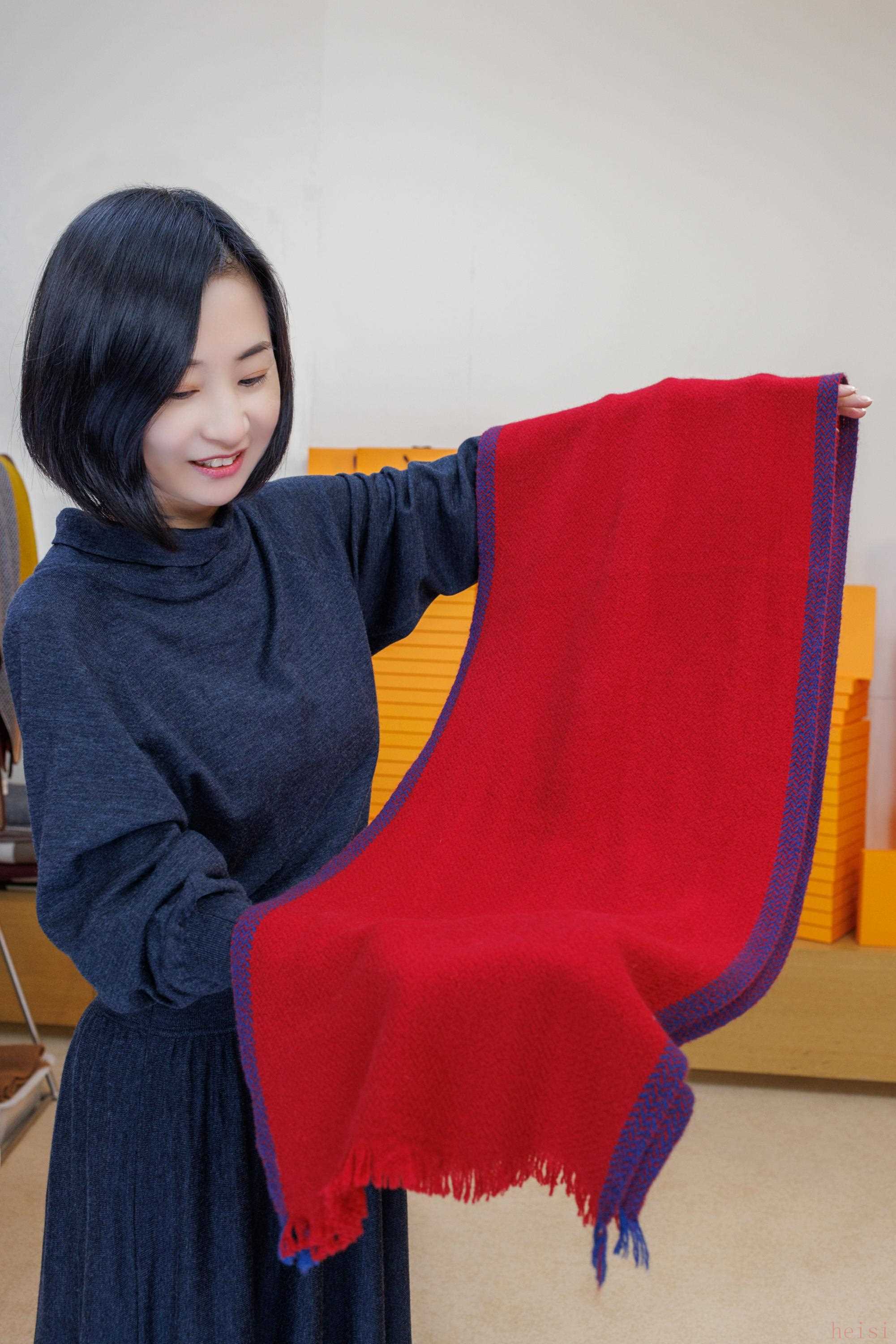 姜可心展示羊绒围巾。