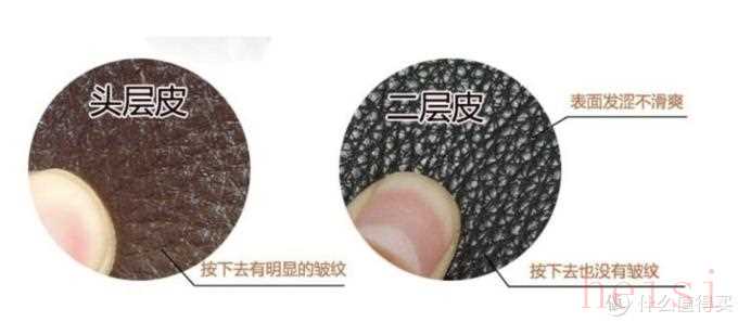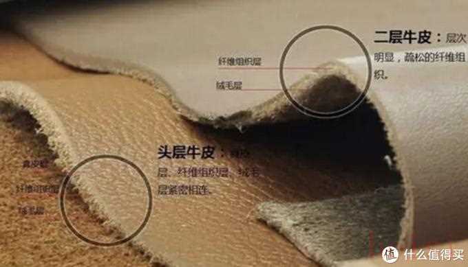 刚才说到头层皮是由动物原皮切成两层最上层的部分就是头层皮,二层皮就是切割之后除去头层皮剩下的部分了,经过涂饰或者贴膜等工艺加工之后形成二层皮(牛剖层移膜革),它的耐用程度要比头层皮差很多。