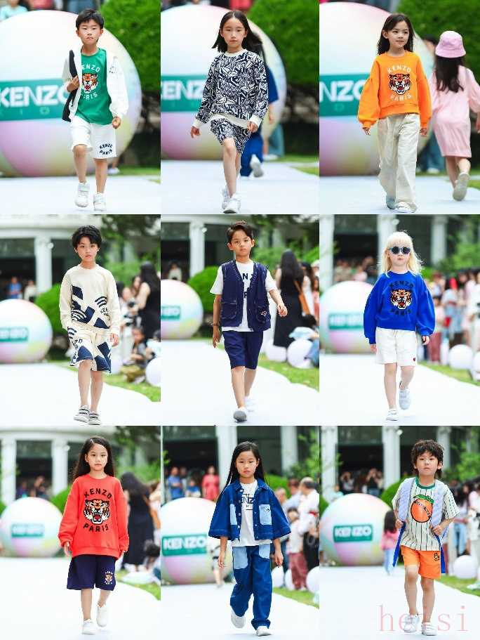 秀场上,身着KENZO KIDS 2025春夏系列的孩童们以灵动步伐诠释品牌对时尚与舒适的双重追求。其中,春夏系列中的“东方遇见西方”主题服饰以简约而纯净的色调为特色,深度融合品牌创始人高田贤三的东方美学基因与艺术总监Nigo的当代潮流视角,创造出根植历史,面向未来的非传统时尚叙事。“水果贴纸”主题服饰以活泼鲜艳的维生素色系为主,汲取水果包装贴纸的灵感并加以重构,设计出满载俏皮欢快的夏日童装。丛林系列则延续品牌经典设计风格,以虎纹为主要元素,兼具优雅古典与夏日轻盈。