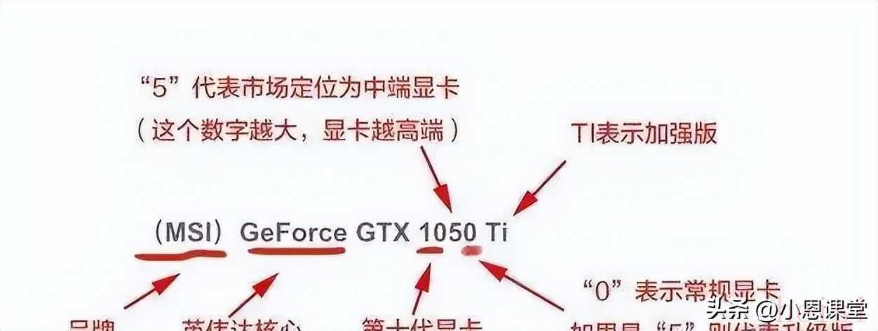 我们可以通过显卡天梯图,来查看显卡各个型号的定位。此外,从显卡的型号中,我们也可以判断显卡的好坏,如下图所示。
