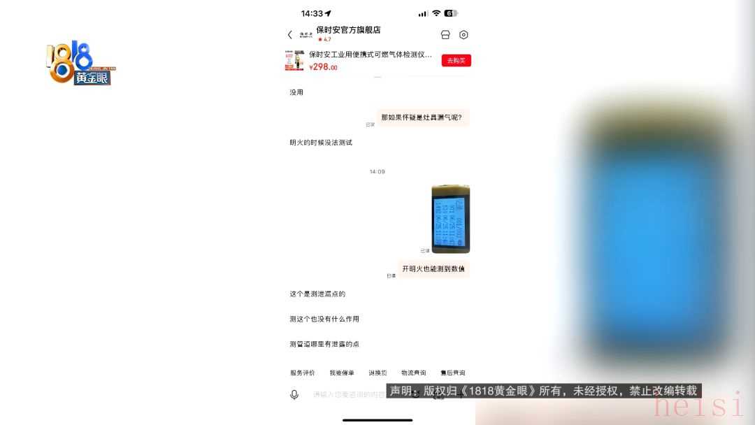 金先生:我们到(报警器)厂家问这个,他说你是每次烧的时候都报警吗?我说是的,平时他说报不报,我说不报,他说那我这个东西绝对没问题。我跟他们(科勒莫)售后说了,我说你这个还是有问题,他说不可能,他说我这个东西有问题。所以后来为了证实,我去买了一个这个东西。