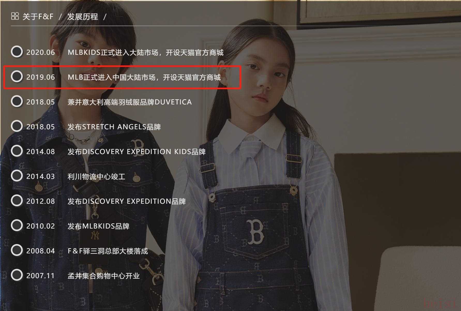 2019年,F&F集团开设了MLB品牌的天猫旗舰店。