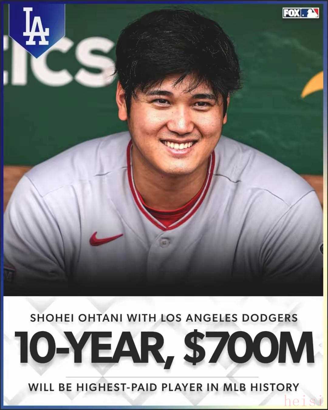 2023年12月,日本棒球运动员大谷祥平(Shohei Ohtani)签约MLB(美国职业棒球大联盟)洛杉矶道奇队,合同的金额高达7亿美元。