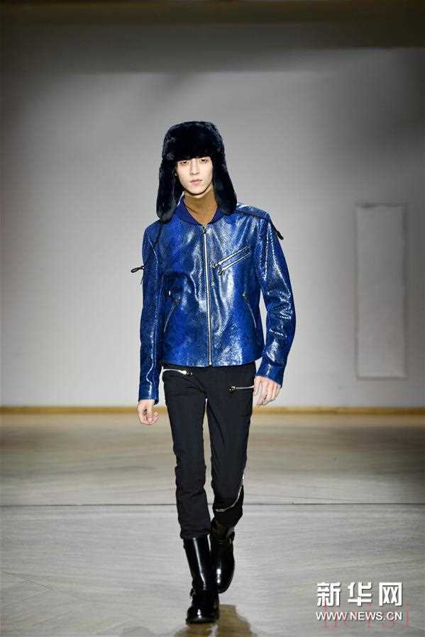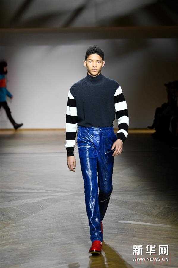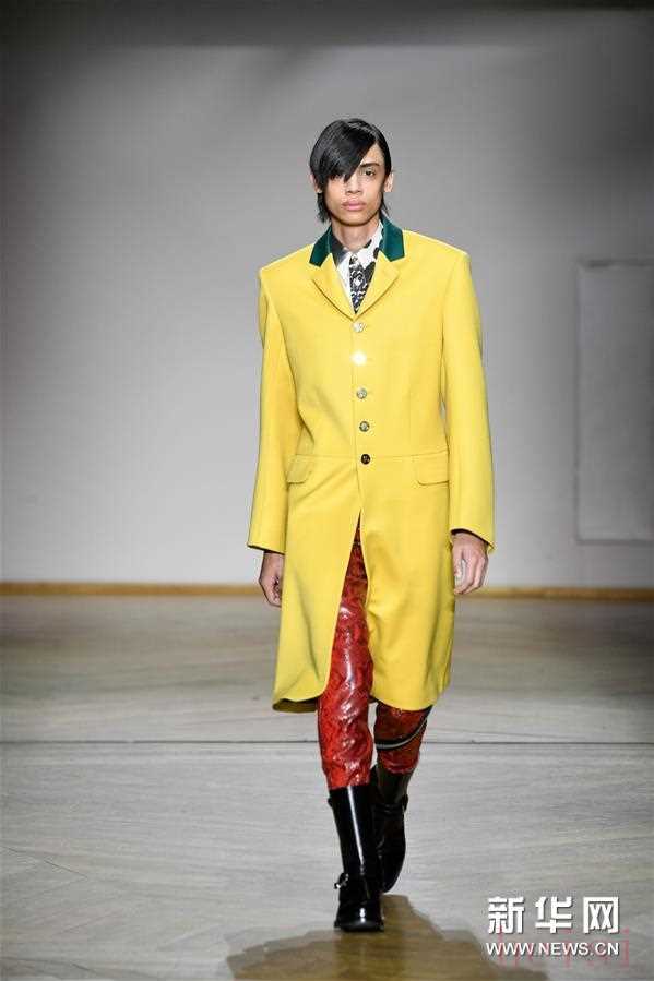1月20日,在法国巴黎男装周上,模特展示保罗·史密斯品牌的2019/2020秋冬男装。 新华社发(皮耶罗·比亚西翁摄)