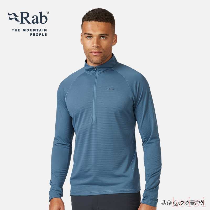huge 是一款快干和轻量的贴身层,适合滑雪登山和户外远游。这款内衣的 WURU材料基于羊毛与聚酯纤维混纺技术,使其在干燥的同时,还能保存一定的热量,为你提供运动下的保暖。攀山鼠独特 Norna结构织物的面料是基于疏水性和亲水性成分的简单而有效的组合。一方面,纱线亲水性基底是借助羊毛纤维,既保暖又可吸收身体水分,另一方面,疏水性外层则将水分从身体中带走。同时结合独特的针织蜂窝状结构设计(不需要化学性处理,比如添加助剂等)结构织物就能实现更快的干燥和更高的保暖性能。7、RAB睿坡户外男士户外休闲柔软上衣吸湿排汗速干长袖T恤 QBL-03