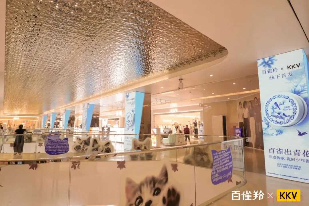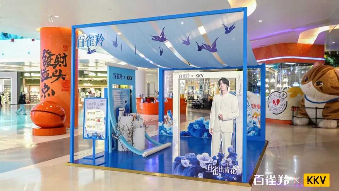 5月9日,百雀羚与KKV在西安开启为期一个月的「百雀出青花」非遗主题快闪活动,为护肤品市场输出了品牌焕新的标志性案例。