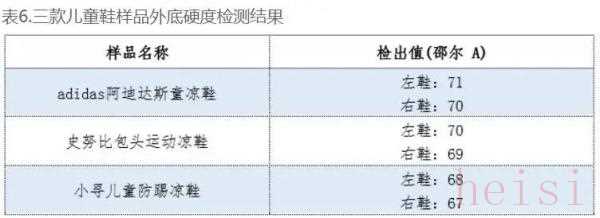 阿迪达斯童凉鞋等3款儿童凉鞋样品外底硬度不符合行业标准要求。来源:深圳市消费者委员会