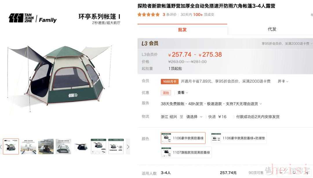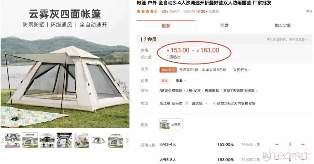 全网销售的帐篷,基本都是绍兴一带生产的。这个工厂是探险者品牌的源头工厂(源头工厂就是生产企业,工商信息完全一致),也代工了三只小驴,在1688上开了两家店。