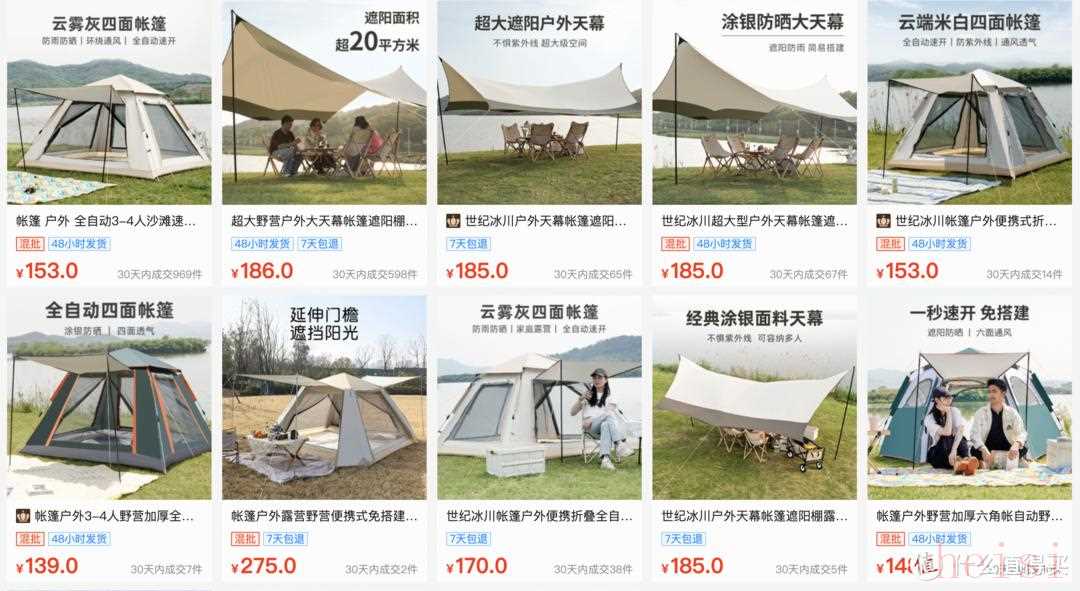 - "搜索关键词":露营帐篷、天幕、户外用品、露营配件