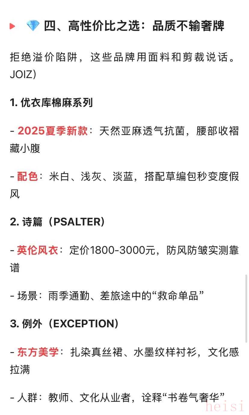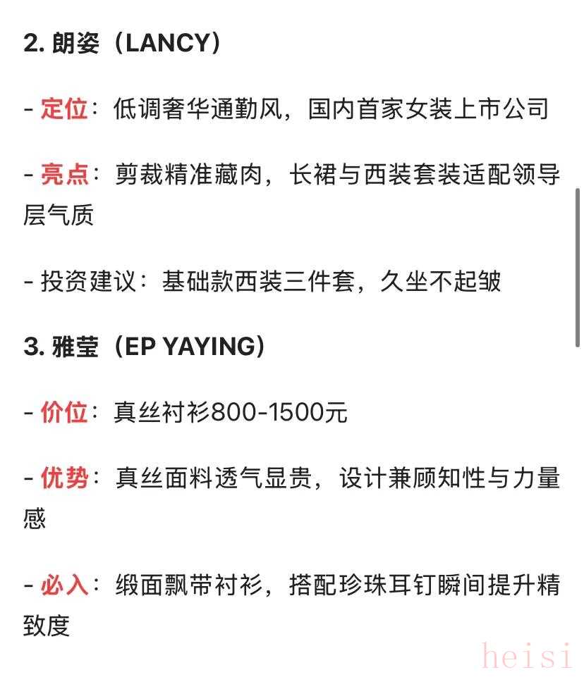 亲爱的朋友们,随着岁月的流转,中年女性的着装风格也逐渐趋向于优雅、舒适与得体。为了帮助大家在这个年龄段找到既适合自己又具有品质感的服装品牌,今天DeepSeek为大家精心整理了一份中年女性服装品牌指南,希望这份清单能成为您的收藏必备!