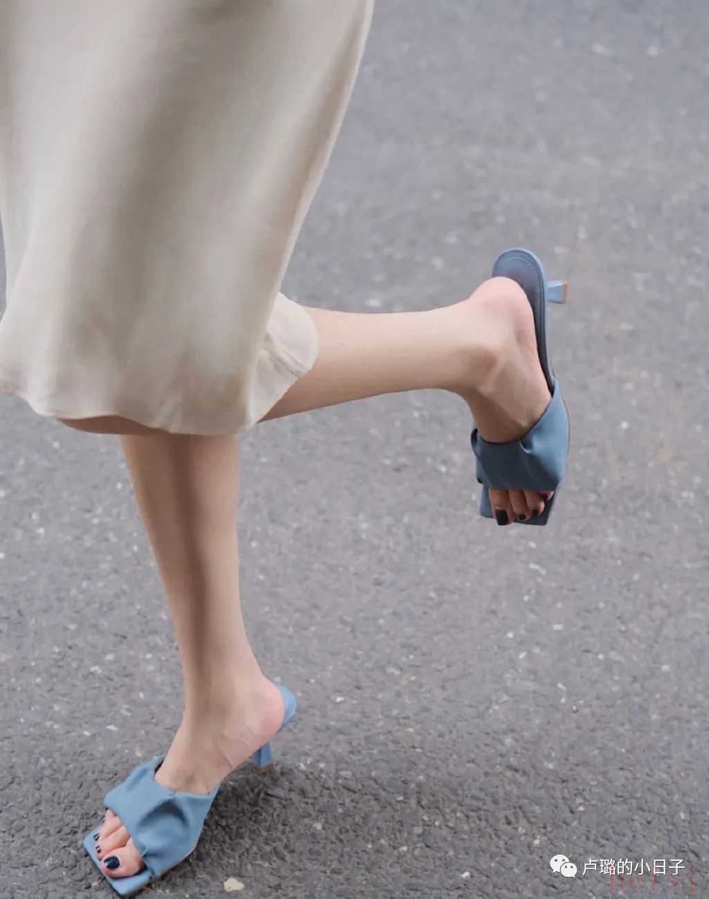 还有一双蓝色的磨砂款,我拿来搭配了白衬衫和蓝色的纱裙,感觉真的很青春洋溢。