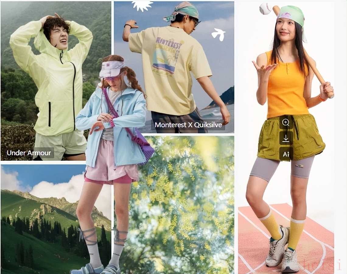通过粗犷与精致的对比碰撞,既保留原始荒野气息,又融入现代都市质感。如森林绿的轻量长裤搭配活力橙的速干 T 恤,外搭一件梨酒色的功能性外套,展现出户外探索的活力与时尚感。POP 趋势网的色彩分析板块对该色系在不同材质上的呈现效果有详细研究,助力设计师精准把握色彩应用。