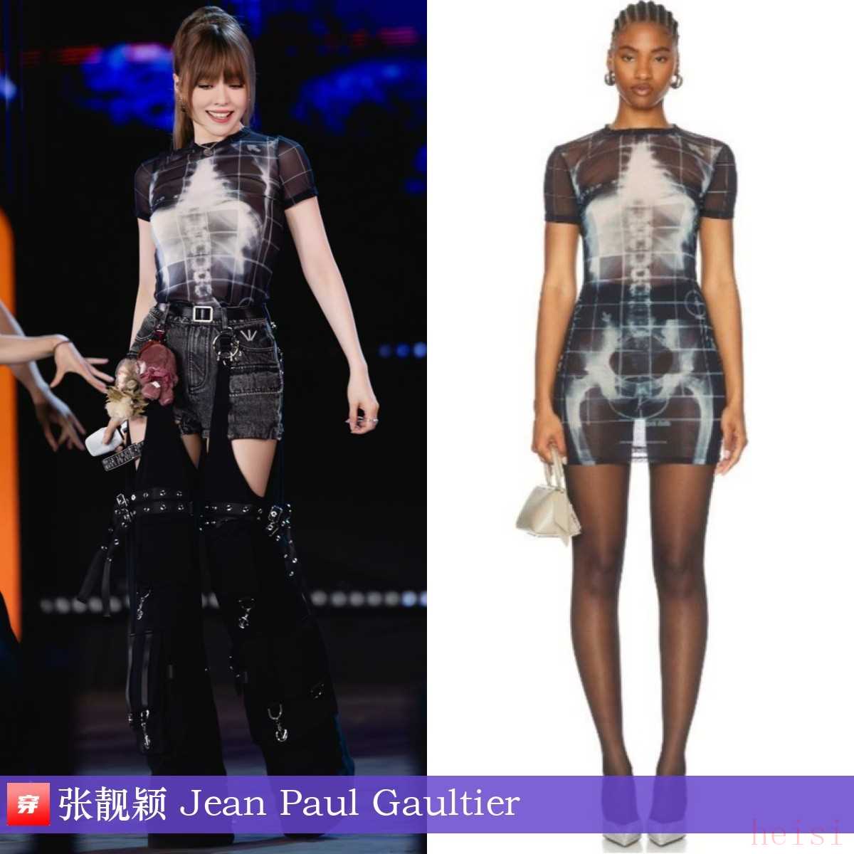 张靓颖,2025年7月31日,《风驰赛车手》冠军之夜。骨骼印花透视连衣裙:Jean Paul Gaultier。