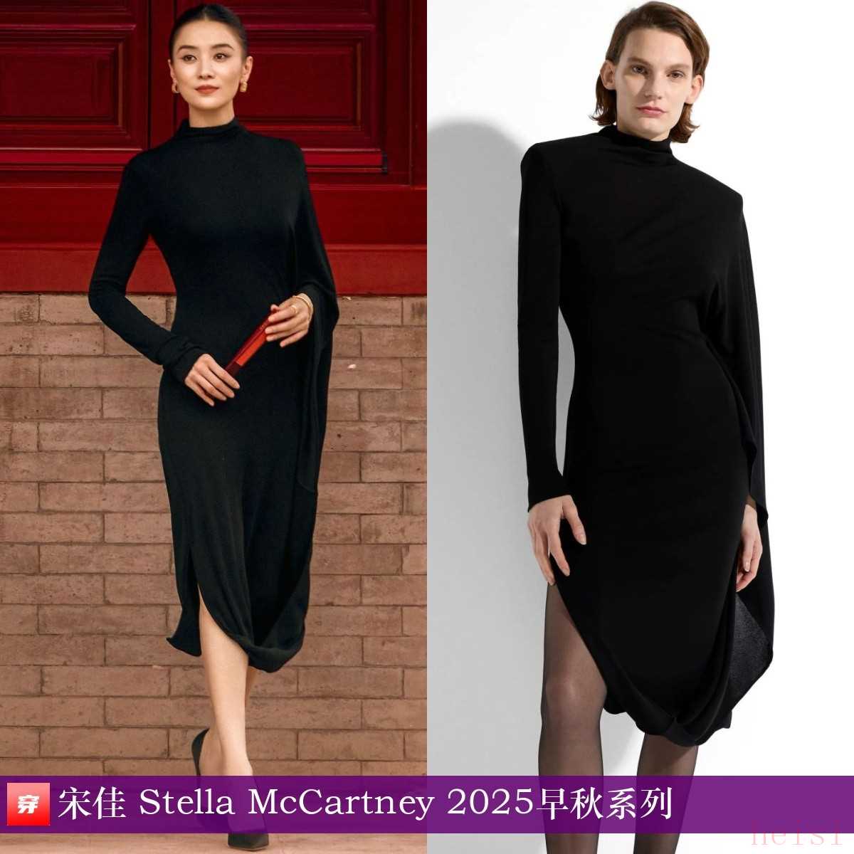 宋佳,2025年8月2日,上城家宴·八方茶会。黑色不对称披肩连衣裙:Stella McCartney 2025早秋系列。