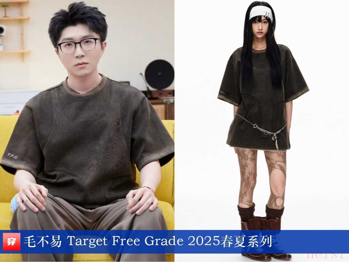 毛不易,2025年7月21日,《毛雪汪》。深灰色印花褪色假两件T恤:Target Free Grade 2025春夏系列。