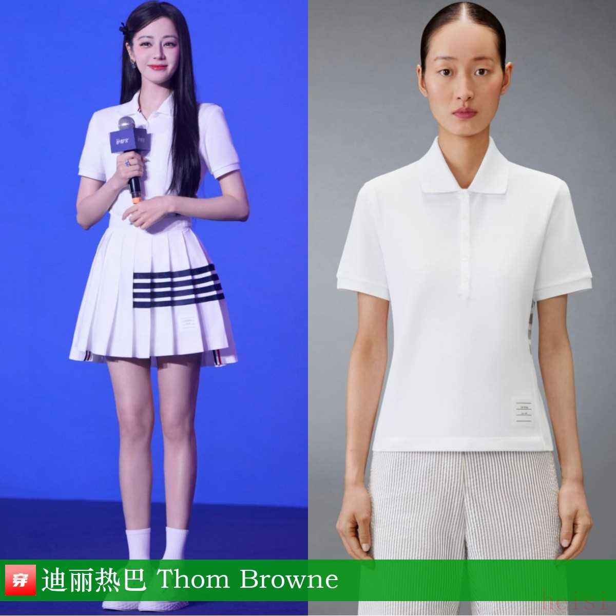 迪丽热巴,2025年8月2日,品牌发布会。白色Polo衫:Thom Browne。
