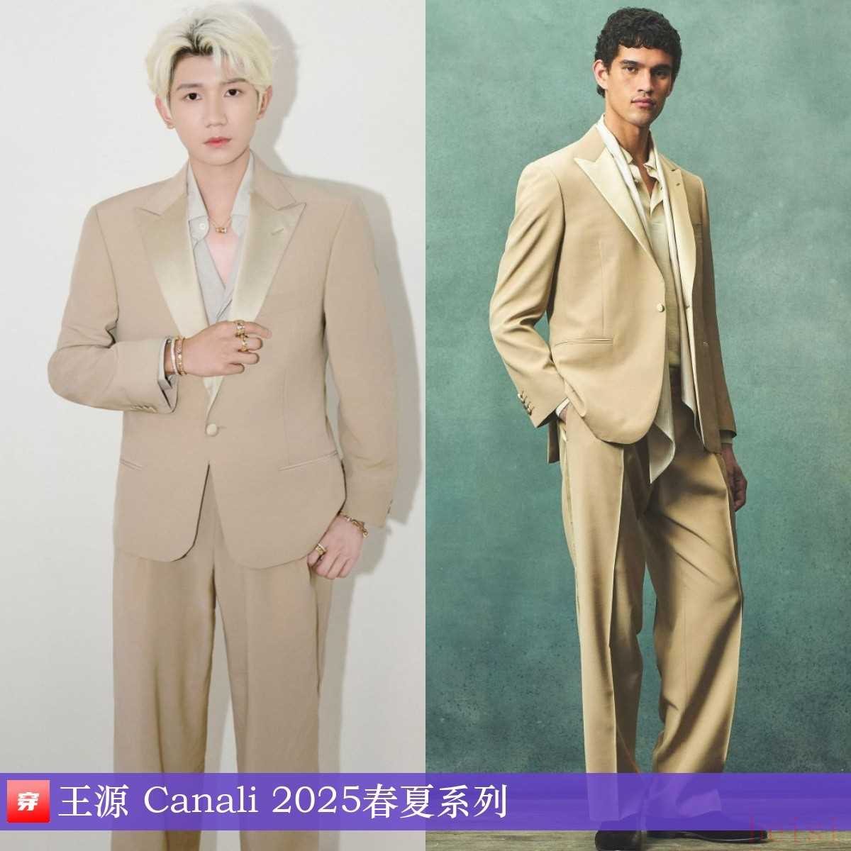 王源,2025年8月3日,品牌直播活动。米色一粒扣西装:Canali 2025春夏系列。