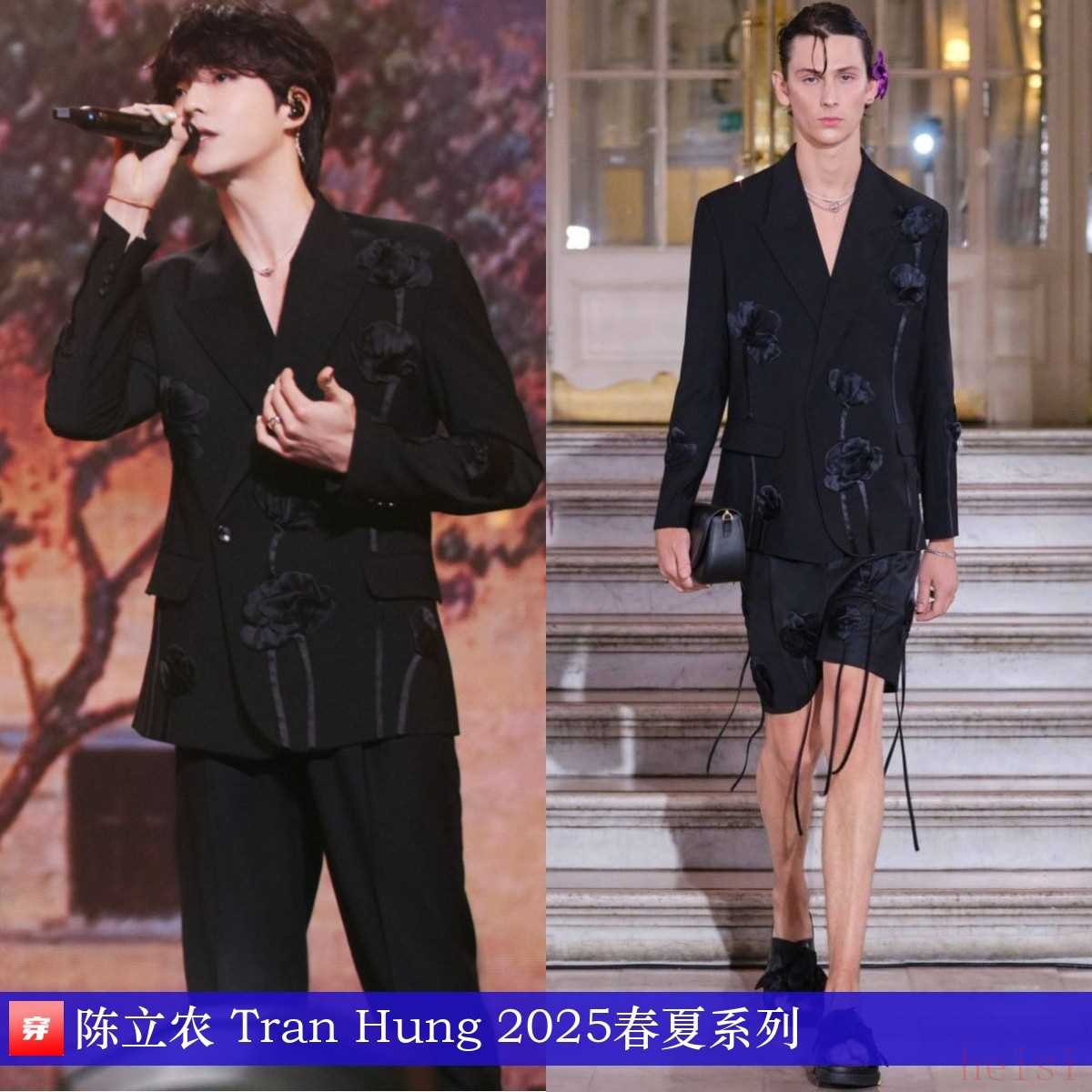 陈立农,2025年8月2日,韩红「我想成为你」巡回演唱会苏州站。黑色花朵刺绣西装:Tran Hung 2025春夏系列。