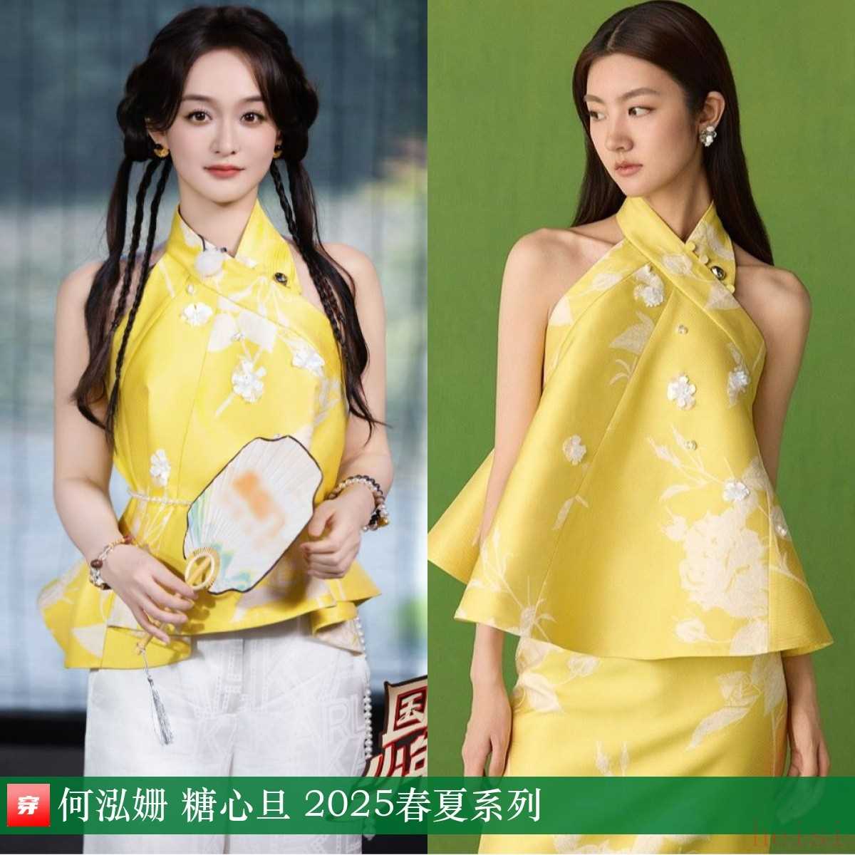 何泓姗,2025年8月3日,《国医少年志》。明黄色挂脖上衣:糖心旦 2025春夏系列。