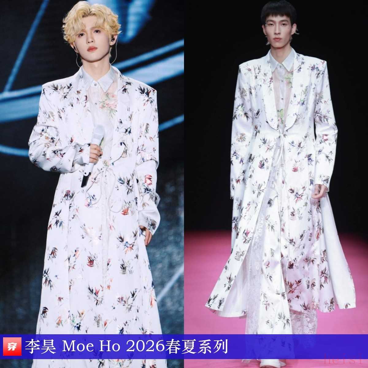 李昊,2025年7月25日,「等枝桠成繁花」2025十个勤天巡回演唱会郑州站。白色透视衬衣、白色印花大衣:Moe Ho 2026春夏系列。