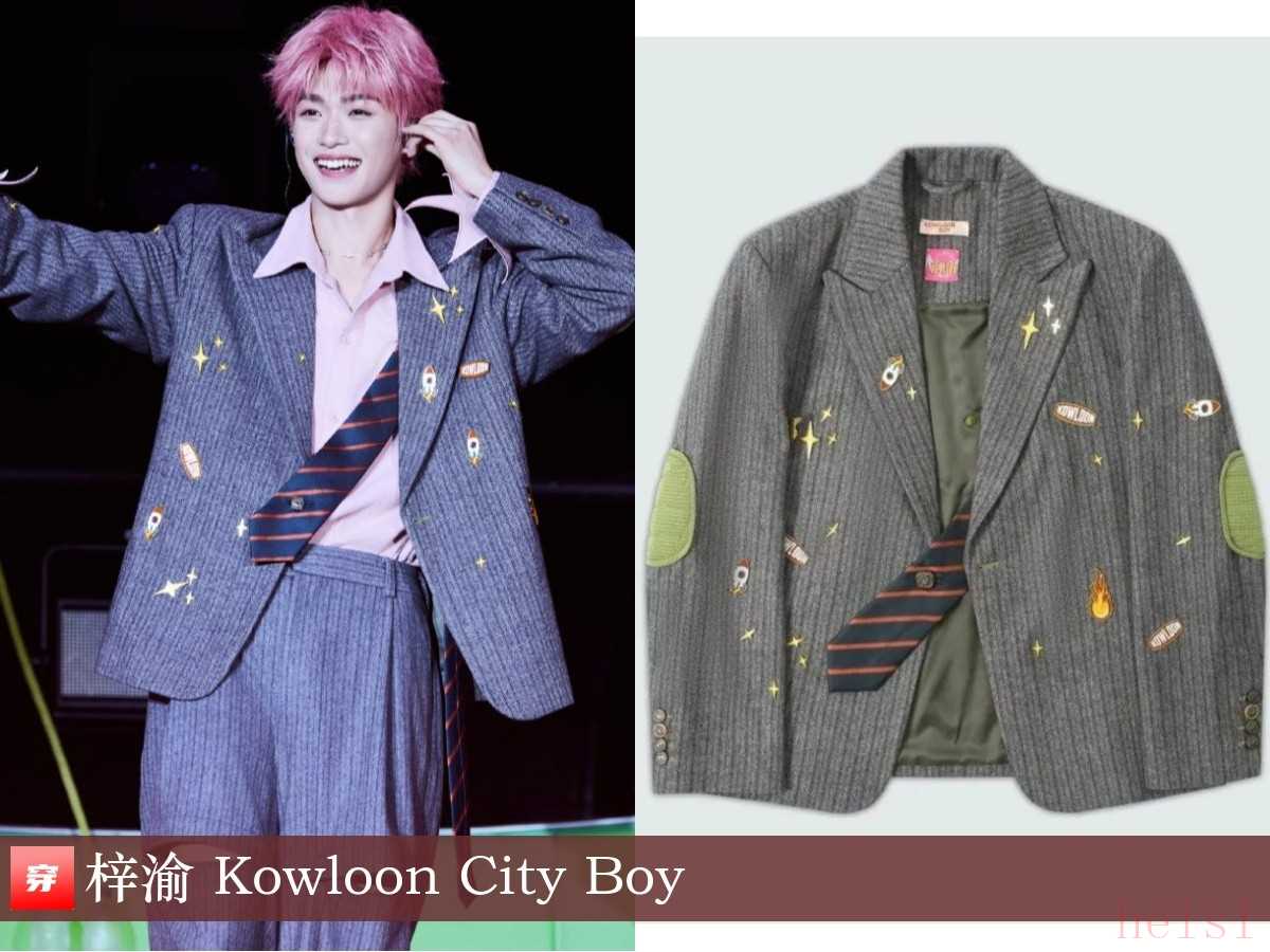 梓渝,2025年8月2日,2025 Z纪元银河左岸音乐节。徽章装饰灰色西装:Kowloon City Boy。