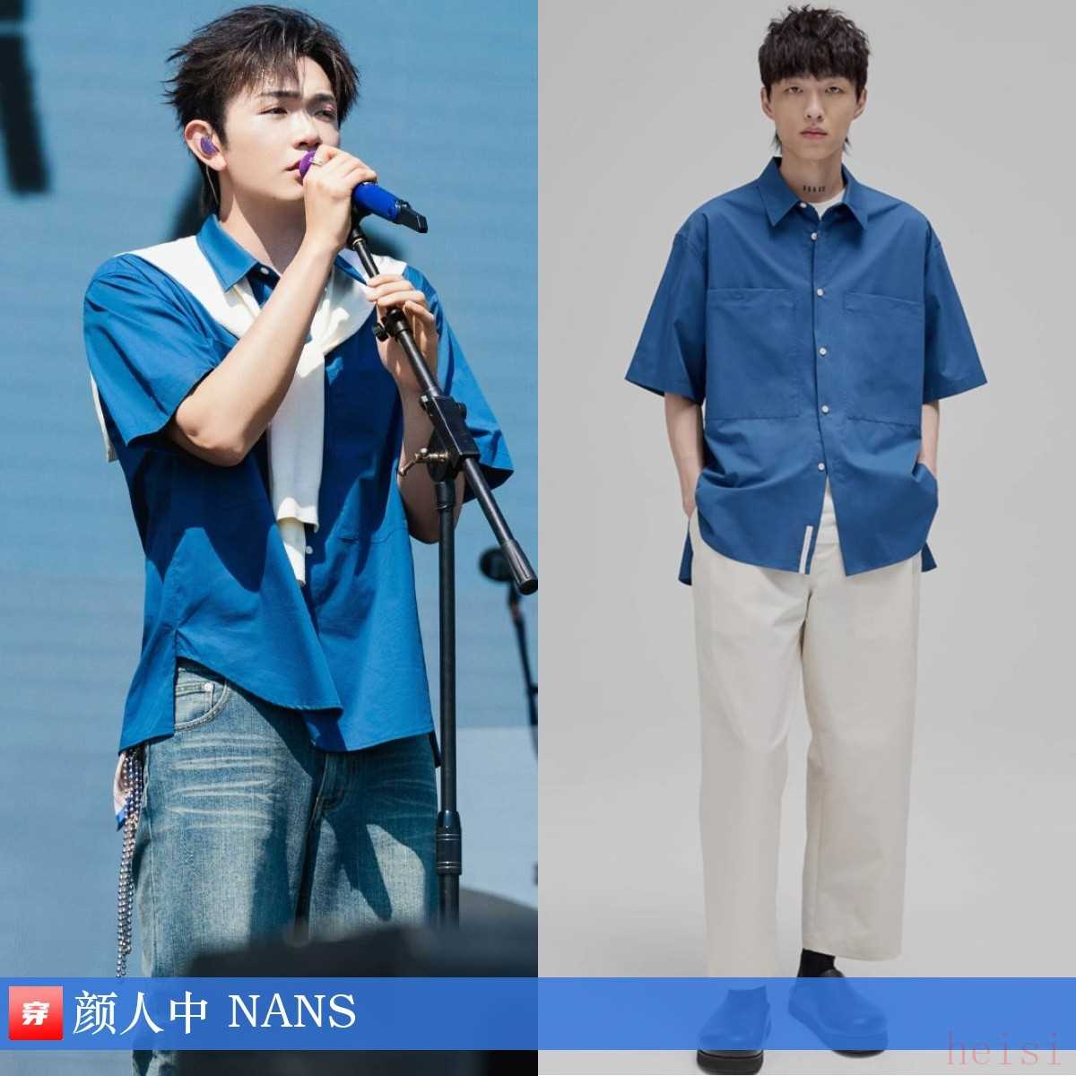 颜人中,2025年7月26日,2025汽水音乐R&B派对。蓝色短袖衬衫:NANS。