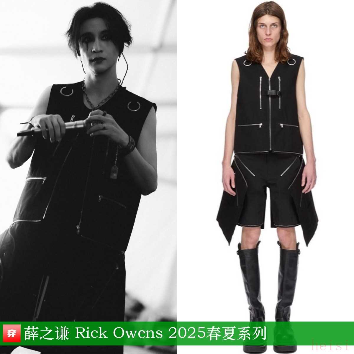 薛之谦,2025年7月6日,2025新蜂音乐节成都站。黑色多功能马甲:Rick Owens 2025春夏系列。