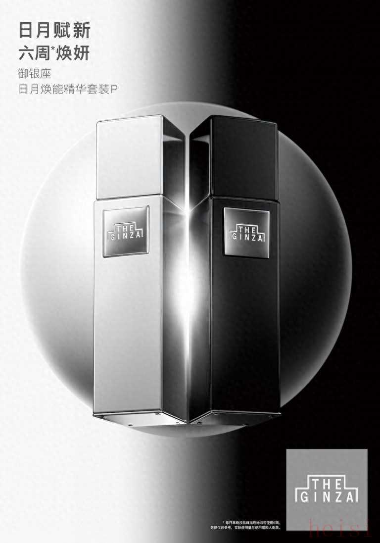 这是 THE GINZA 御银座系列下推出的一款名为“日月焕能精华套装”的产品。它以“日月”为主题,旨在提供“焕能”和“焕妍”的功效,可能在六周内显现效果。该套装于2023年9月1日在 THE GINZA 御银座进行升级上市。
