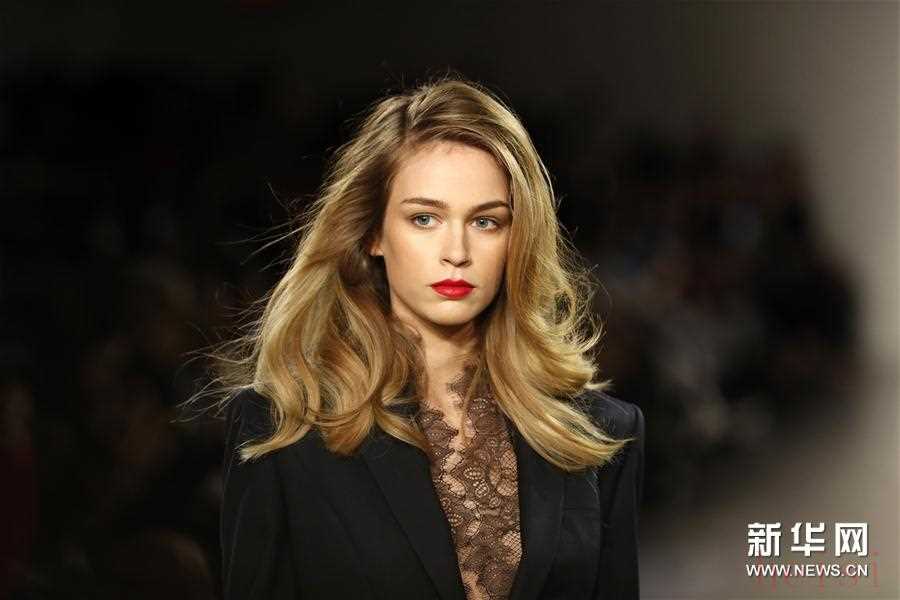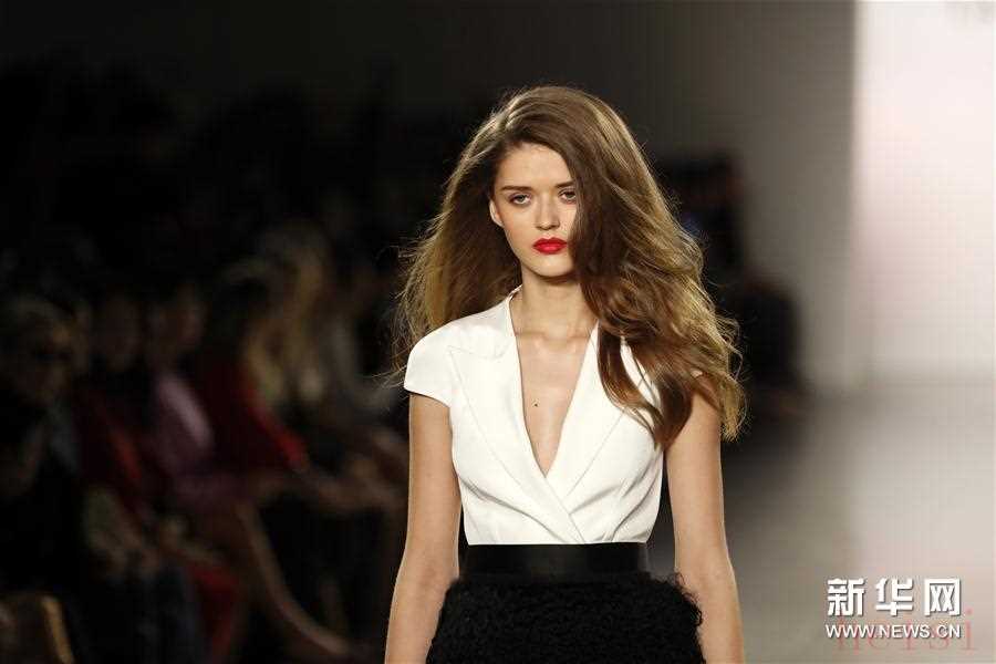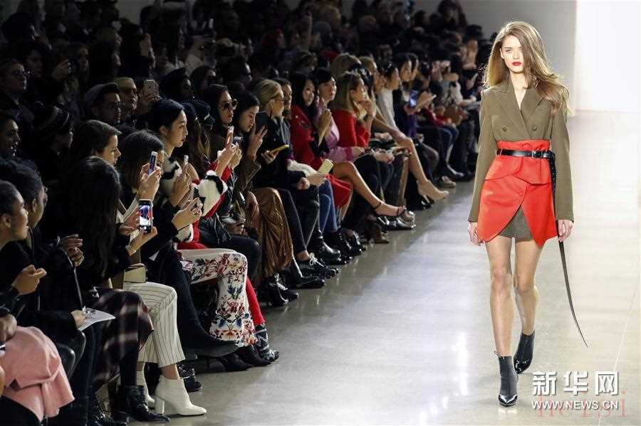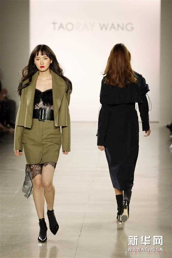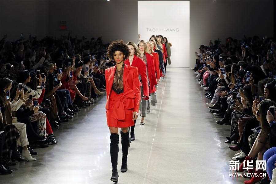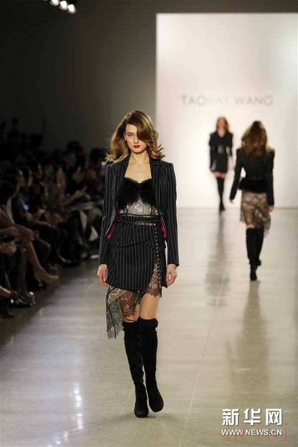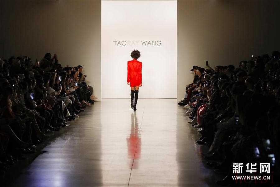 2月10日,在美国纽约时装周上,模特展示Taoray Wang品牌时装。 当日,由中国设计师王陶设计的Taoray Wang品牌时装亮相2018纽约时装周。 新华社记者李木子摄