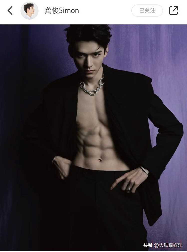 坐在台下没办法展露身材,事后在社交平台发布了一张西装敞开的照片让人直流哈喇子,难怪敢真空上阵,原来西装下面别有洞天,那一排腹肌是自律的象征没错了。