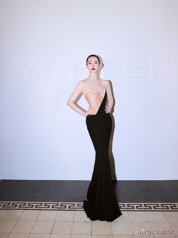 不得不说,戚薇的身材真是不像生了两个娃的奔四妇女,巴黎时装周Mugler秀上,她穿着一条黑粉拼接的抹胸裙,大背头、烈焰红唇,气场全开,美得不像话。