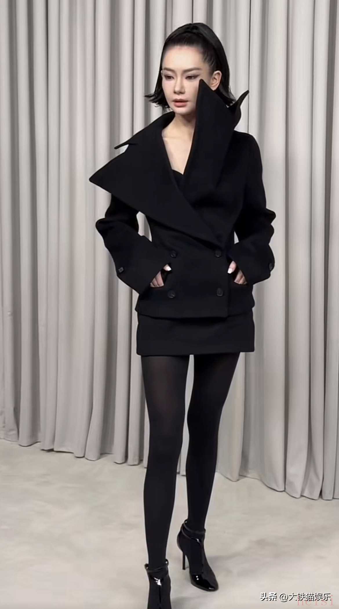 前几天她在米兰时装周的造型比较诡异,又或者说是普通人看不懂的时尚,黑大衣配黑色修身蕾丝袜,脚踩黑色高跟鞋。