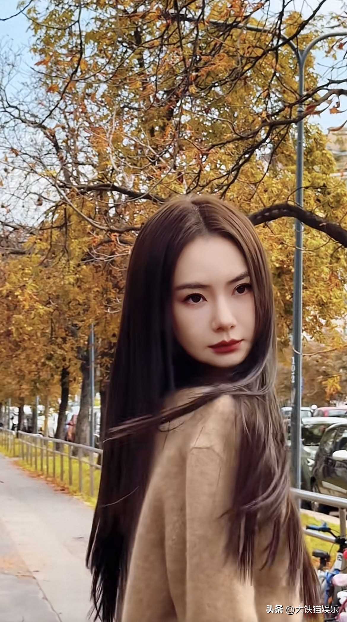 视频中街角的树叶枯黄,草坪里堆满落叶,蓝天白云,秋意正浓,长发披肩的中年少女穿着宽松的针织裙闯入镜头,风乍起,吹起了女孩的秀发,每一帧都美得像幅油画。