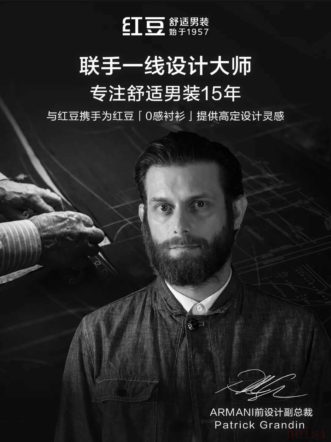 阿玛尼前设计副总裁PATRICK GRANDIN在男装设计方面,有着优秀的履历,2003年入职Armani Exchange,作为奢侈品设计师,有着高质量的设计能力,找到他来进行合作,可见红豆对产品把控的要求之高。