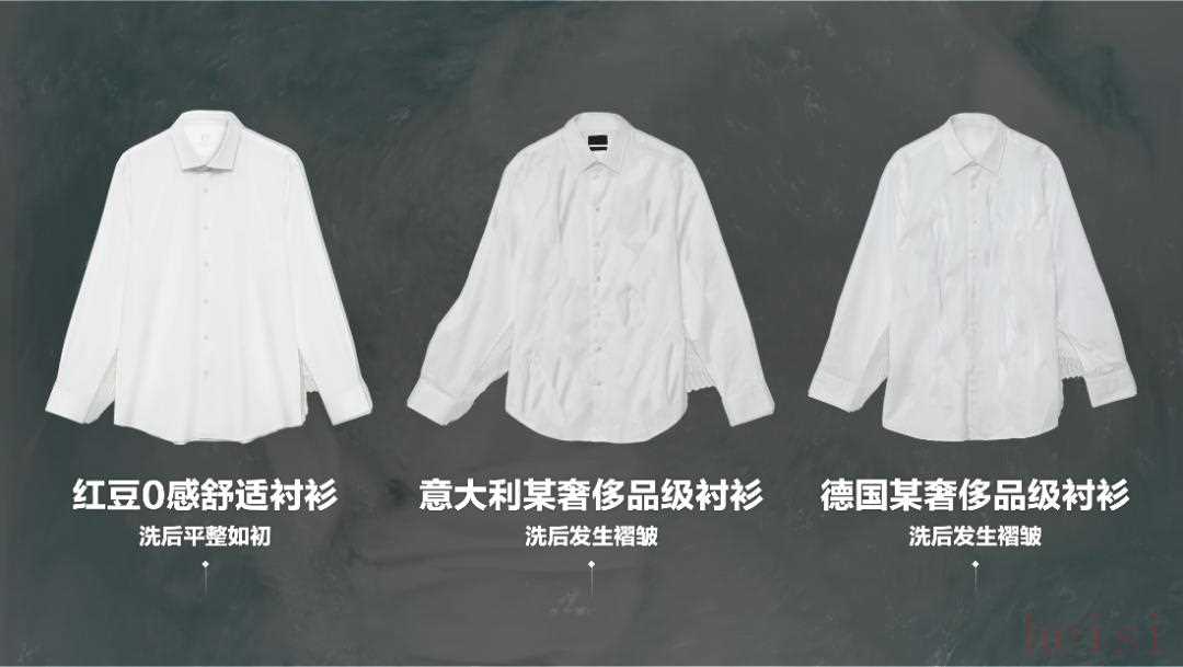 它在抗皱性能方面表现非常优异, 红豆0感舒适衬衫和国外奢侈品衬衫一起放到洗衣机里,常规洗涤后、脱水后,经检测,三件衬衫中只有它符合“成衣免烫级别”。