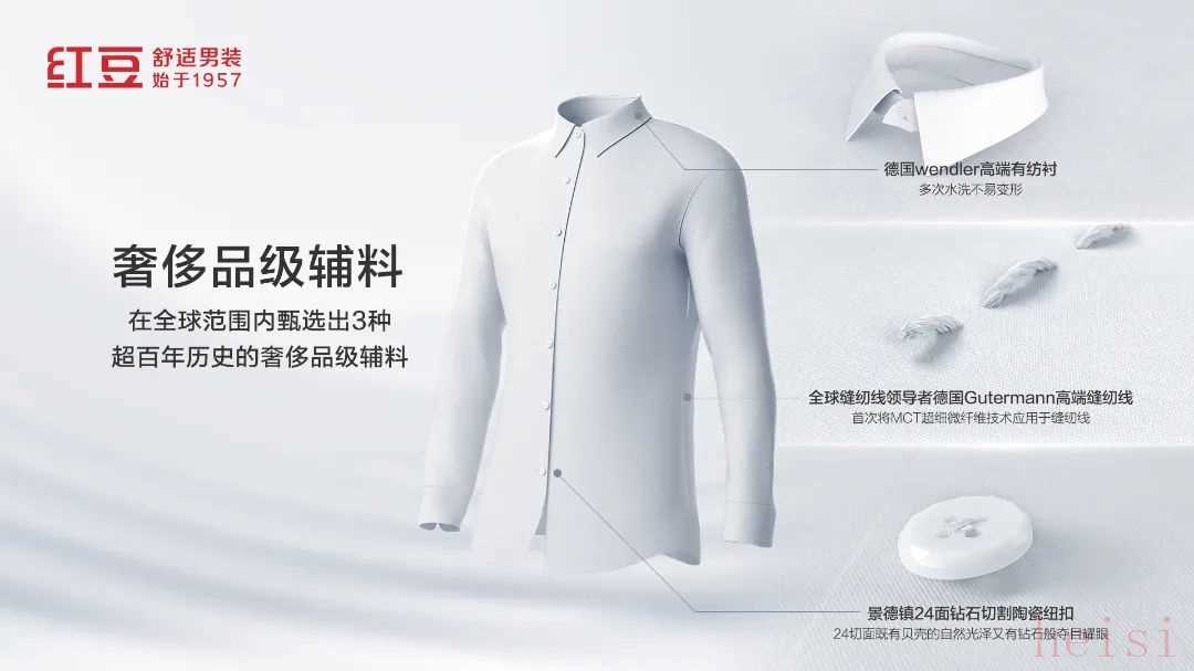 红豆男装将这件衬衫命名为“0感舒适衬衫“,源于这件衬衫的优秀性能,代表着0压、0皱、0摩擦、0束缚。