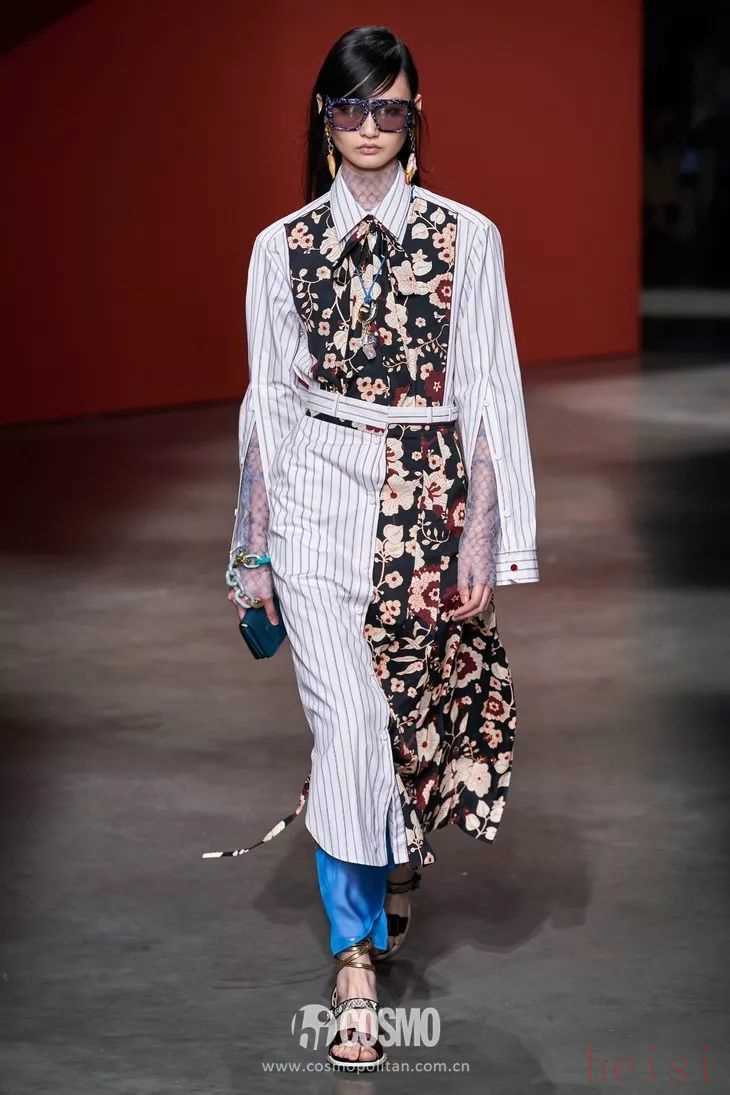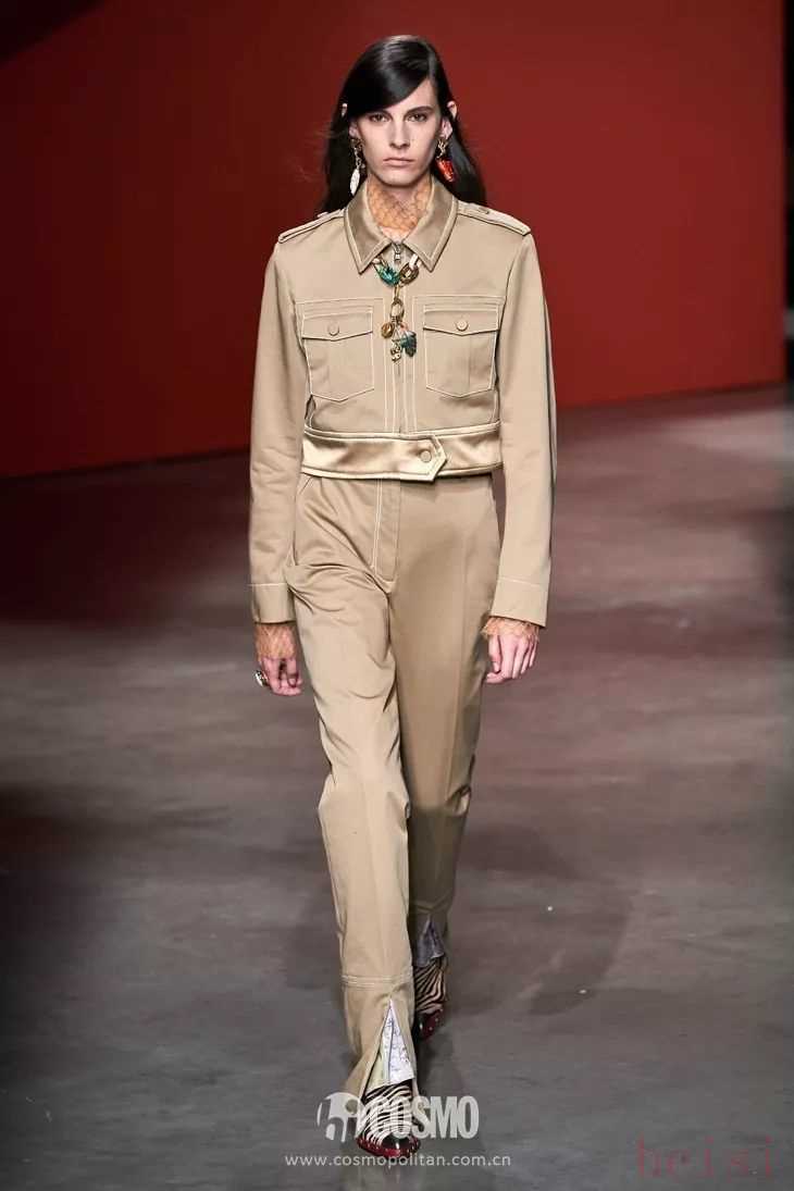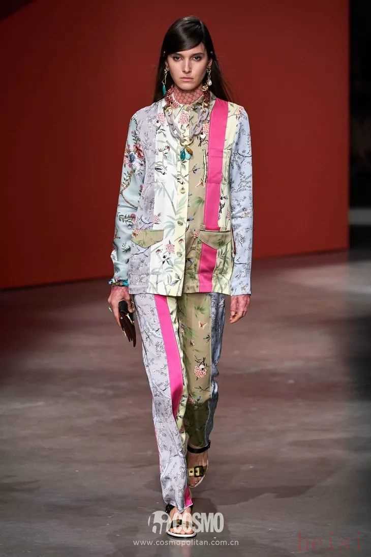 Ports 1961本季大量使用拼接元素,将许多看似毫无关联的花纹巧妙的地结合在一起,在熟悉的概念中注入了崭新的活力。开放式画风的彩色西装、异材质拼接风衣、风格和谐的卡其色单品,经过巧妙处理的扣角领缎面工装都为熟悉的概念注入了崭新的活力。